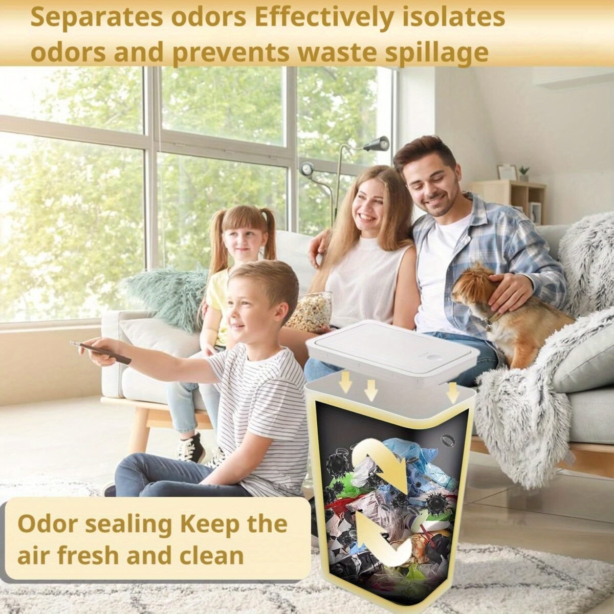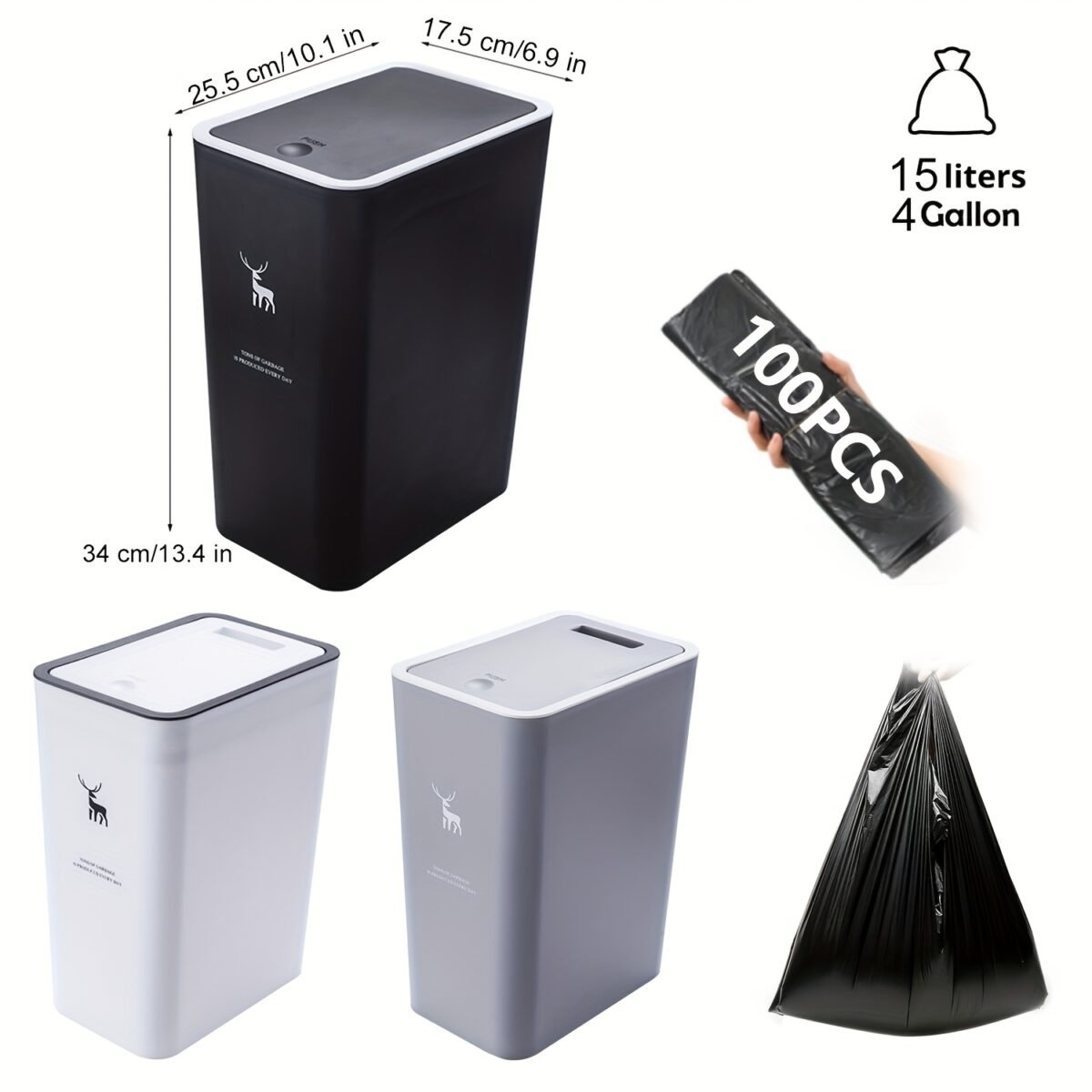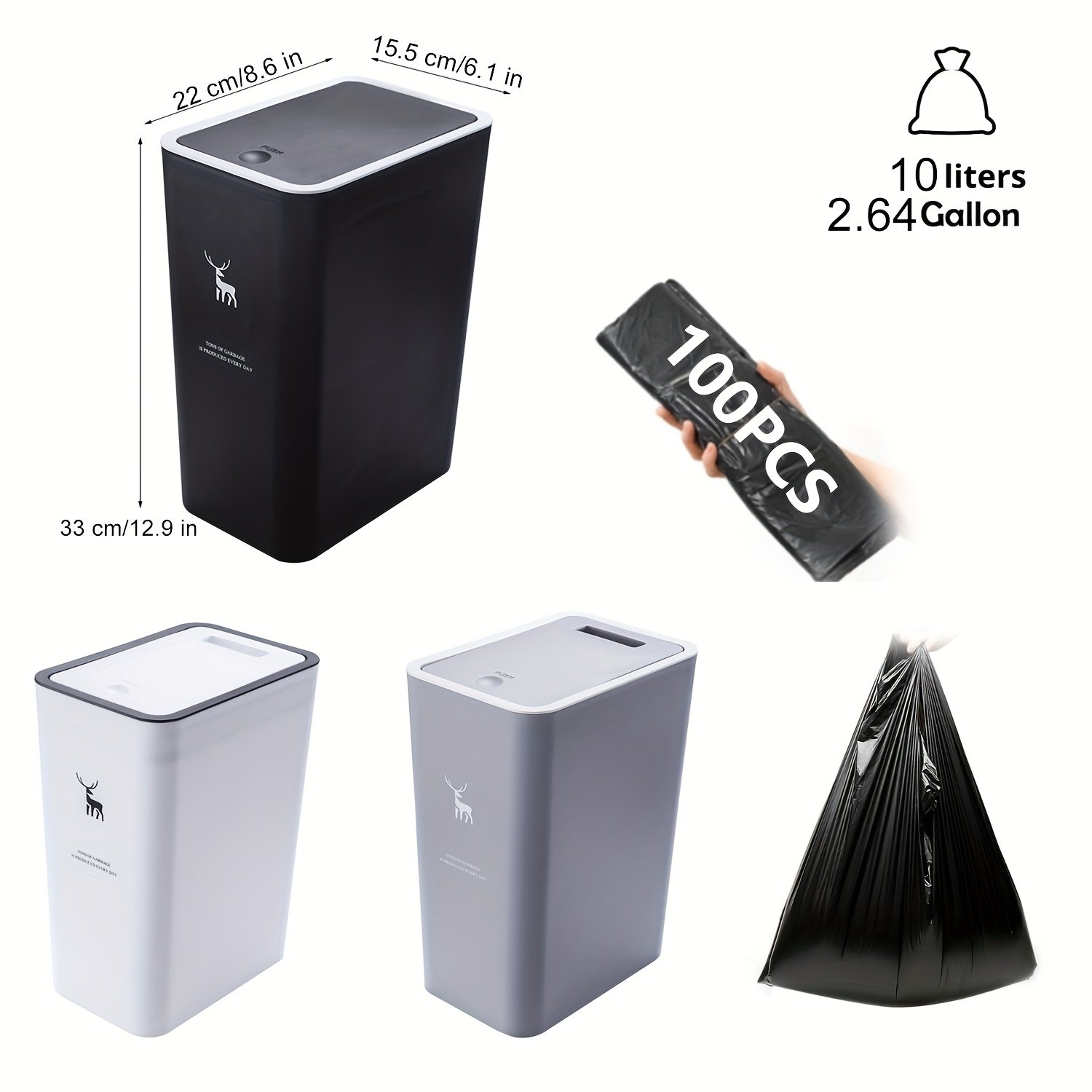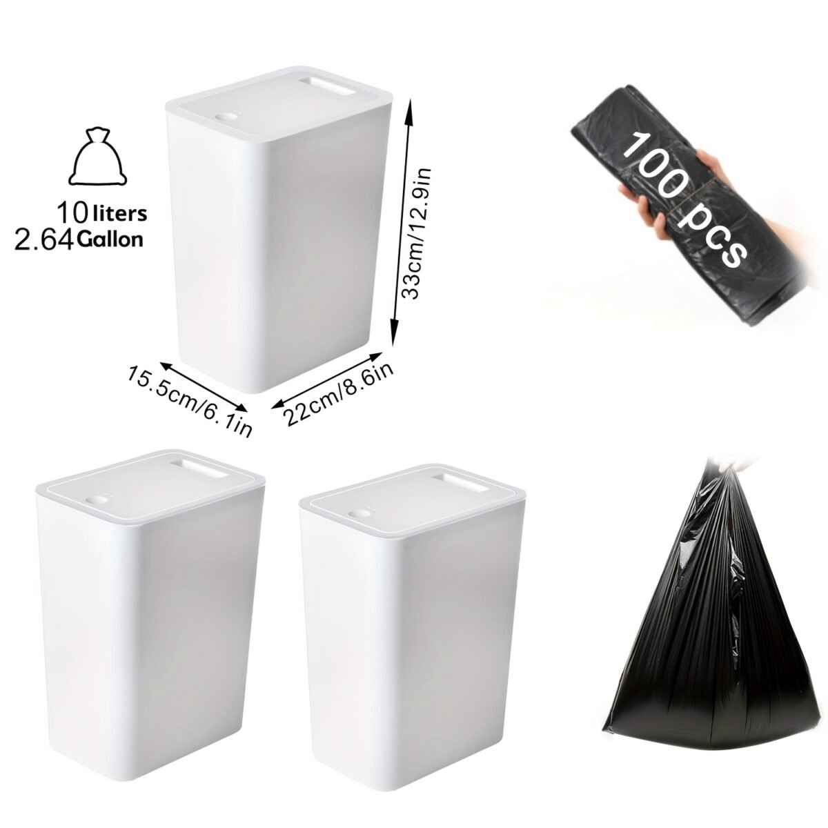 3 piezas de cubo de basura de 15L con tapa sellada, antideslizante, antiolor y silencioso, universal para baño, cocina, dormitorio, incluye más de 100 bolsas de basura gratis.