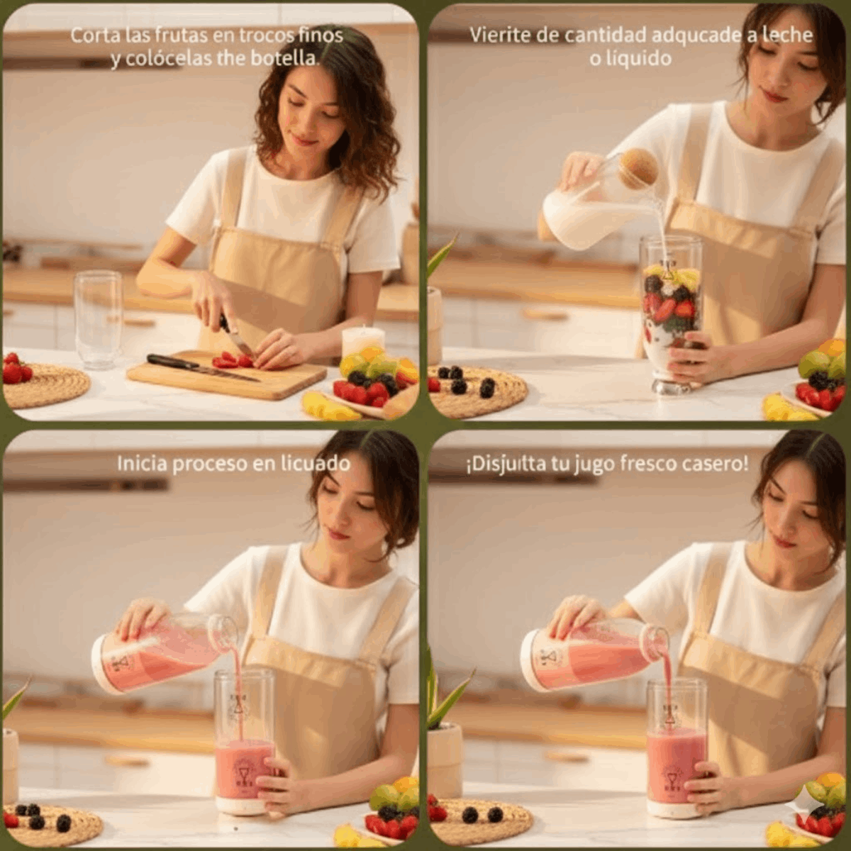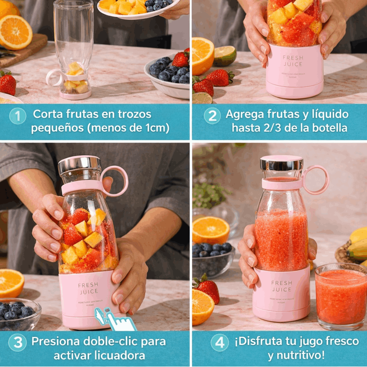 Mini Licuadora Portátil Recargable 380ml Rosa