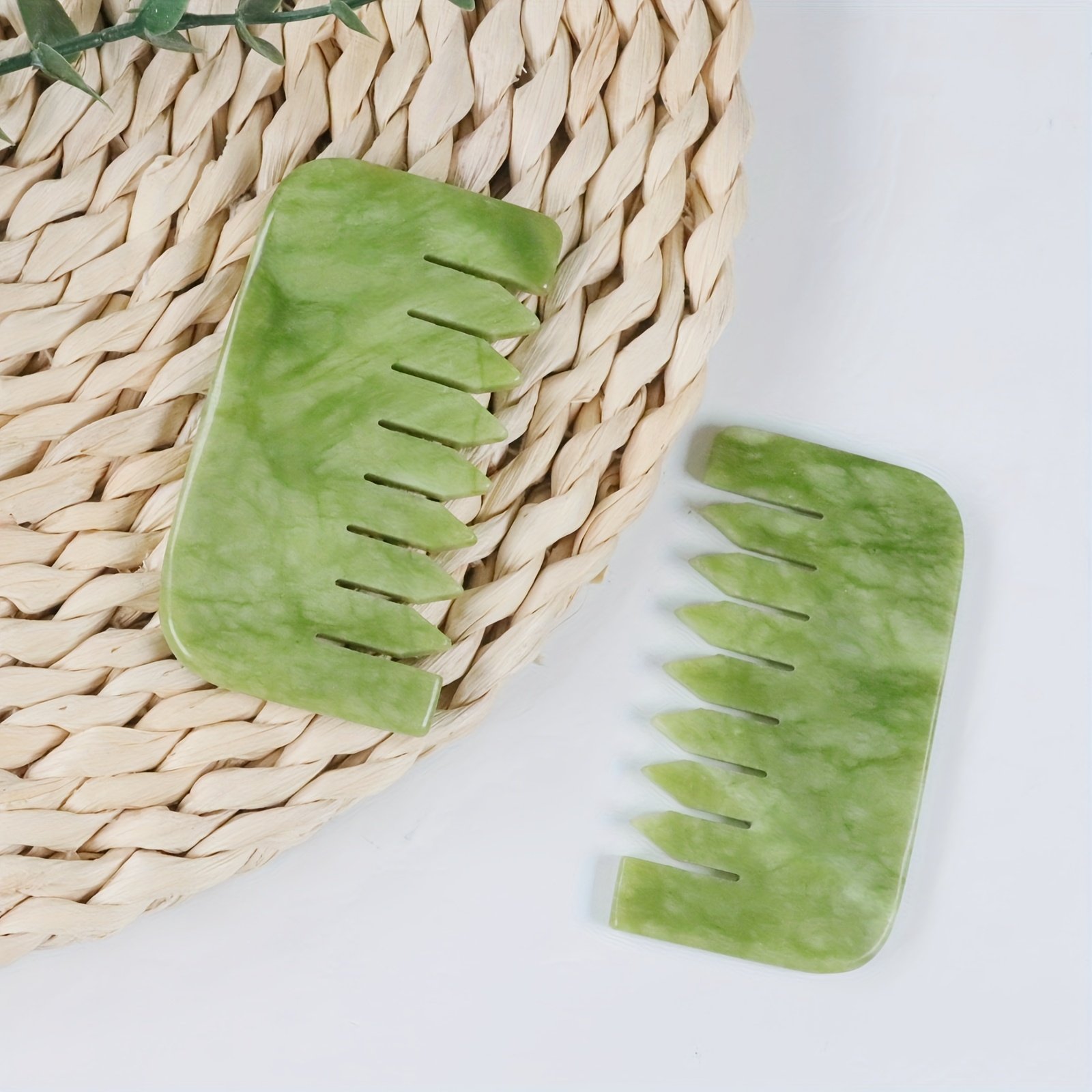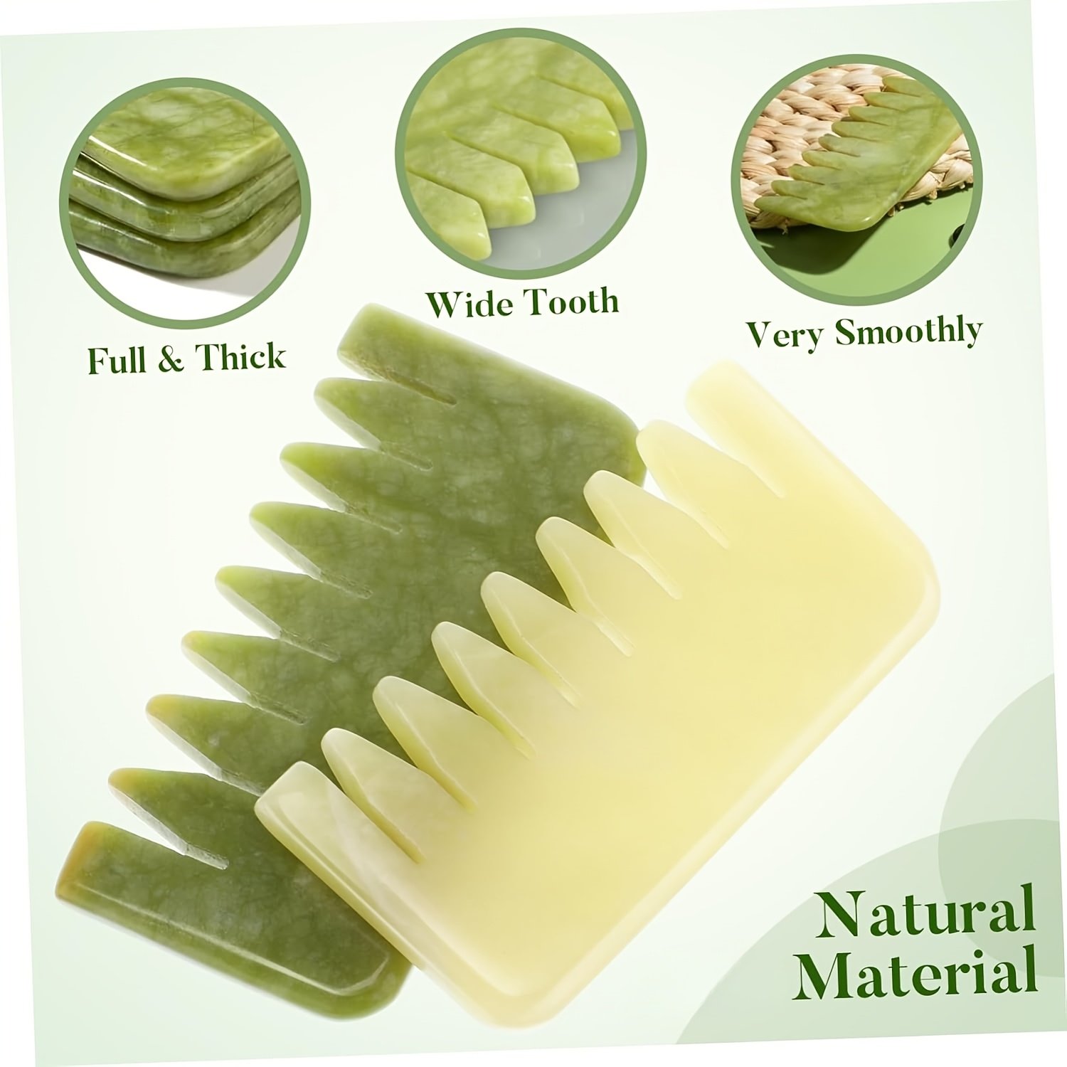 Peine de Masaje Gua Sha | Masajeador Facial y Corporal de Piedra Verde | Herramienta de Masaje Tradicional Multifuncional para el Cuidado del Cuidado del Cuero Cabelludo y la Cabeza | Diseño Ergonómico...