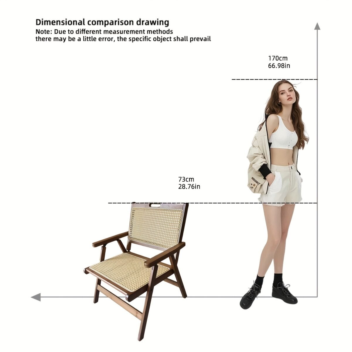 Silla Plegable de Ratán para Hogar, Balcón, Oficina, Exterior, Silla de Descanso Plegable Ligera y Portátil para Sala de Estar, Comedor, Dormitorio, Estudio, Oficina, Patio, Adecuada para las 4 Estaciones,...
