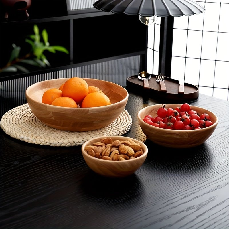 Tazón Grande de Madera Maciza Estilo Japonés para la Cocina, Ideal para Mezclar Verduras, Preparar Masas y Ensaladas de Frutas. Accesorio de Cocina Ideal para Hoteles y Hogares, Sirve como Tazón para...